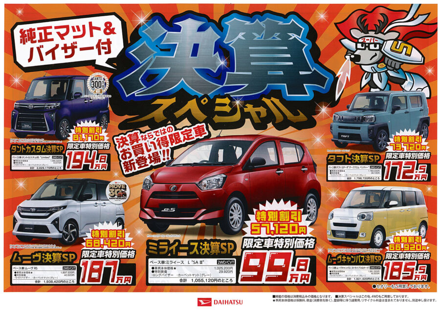 さて、ダイハツ春日ではお客様の日頃のご愛顧に深い感謝の気持ちを込めて、令和8年2月7日(土)~『大決算フェア』を開催します 🎉