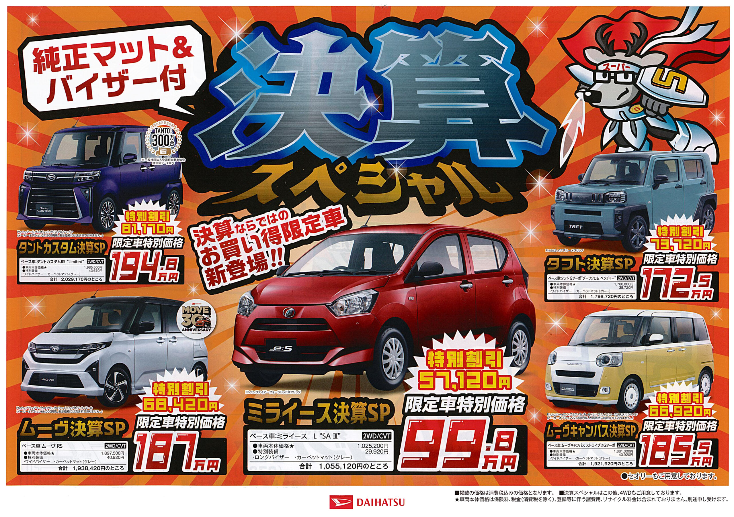 また、決算ならではのお買得限定車『決算スペシャル』は、純正マット&バイザー付きでとってもお買い得‼️