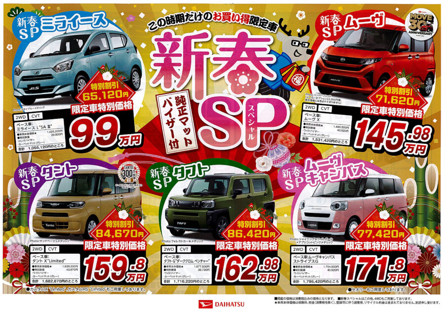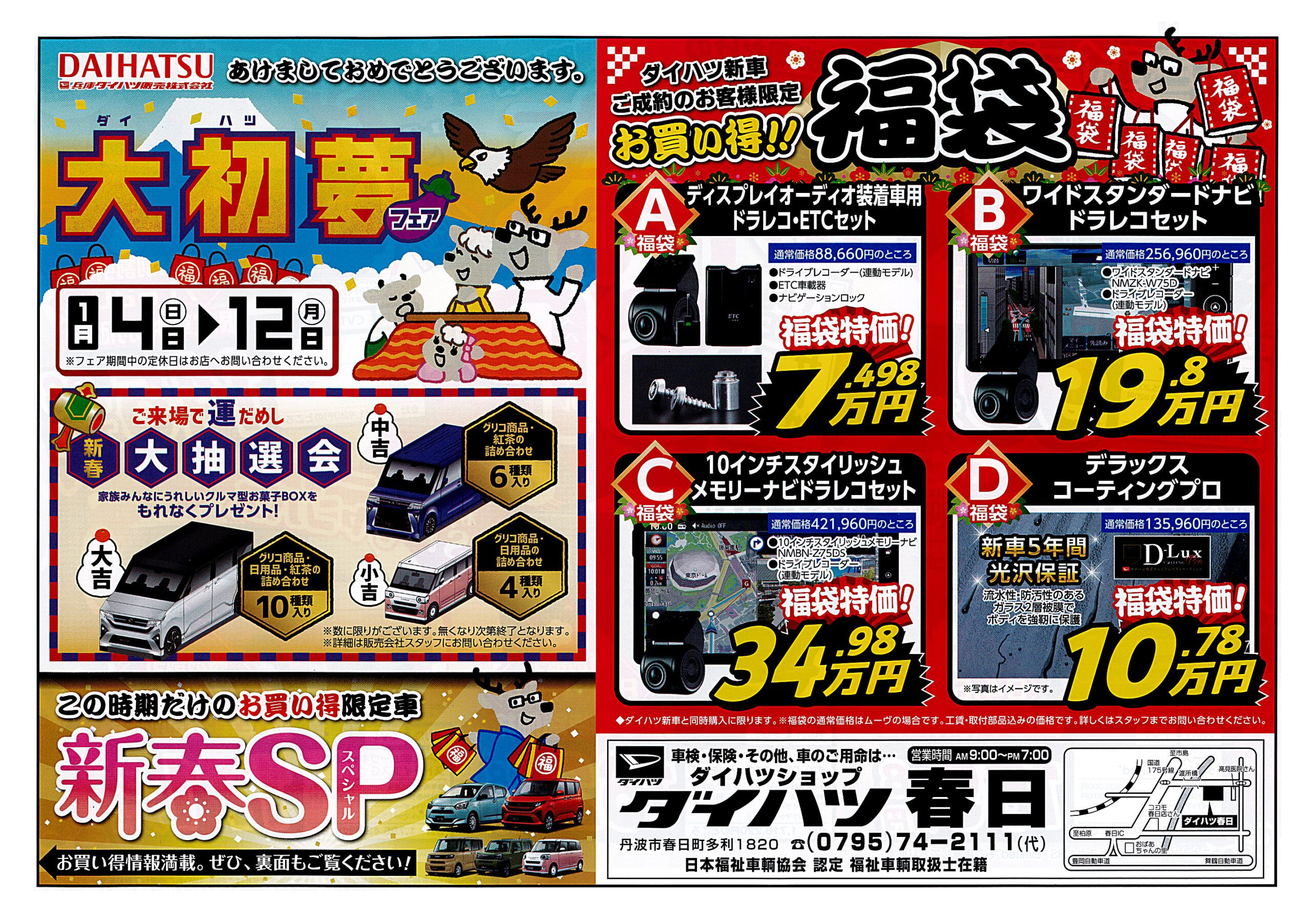 さて、ダイハツ春日では1月4日(土)~ 年の初めの恒例イベント『大初夢フェア』 を開催いたします 🎉